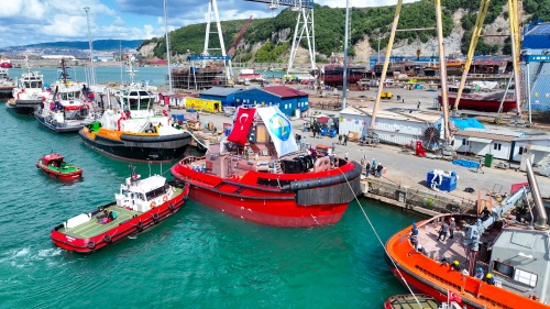 Eregli Shipyard launched 36m/95 tbp Tug Boat successfully. It is the first of four tug boat series. It measures 36,00m in length, 14,50m in width, 6,03m in depth. It is equipped with Wartsila engin...