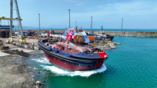 Eregli Shipyard launched 36m/95 tbp Tug Boat successfully. It is the first of four tug boat series. It measures 36,00m in length, 14,50m in width, 6,03m in depth. It is equipped with Wartsila engin...